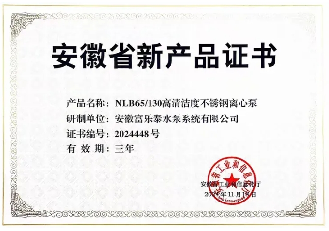“防位移式軟密封閘閥及其使用方法”榮獲安徽省專利優(yōu)秀獎(jiǎng)。小扭矩軟密封閘閥入選“安徽省新產(chǎn)品”名單。安徽富樂泰水泵NLB130高清潔度不銹鋼離心泵入選“安徽省新產(chǎn)品”名單。