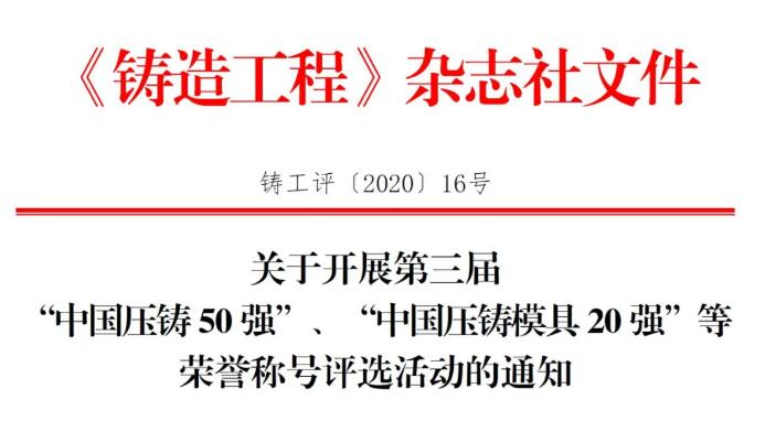為展示壓鑄行業(yè)近幾年快速發(fā)展所取得的成績,提高優(yōu)秀壓鑄及壓鑄模具企業(yè)品牌影響力,“樹標(biāo)桿、引路徑”推動壓鑄行業(yè)健康發(fā)展,現(xiàn)正式啟動第三屆“中國壓鑄件生產(chǎn)企業(yè)綜合實力50強(簡稱中國壓鑄50強)”、“中國壓鑄模具生產(chǎn)企業(yè)綜合實力20強(簡稱中國壓鑄模具20強)”及“中國鑄造行業(yè)壓鑄件生產(chǎn)企業(yè)和中國鑄造行業(yè)壓鑄模具生產(chǎn)企業(yè)成長之星”評選活動。請年產(chǎn)值超過1.5億元人民幣的壓鑄件生產(chǎn)企業(yè)和年產(chǎn)值超過5000萬元人民幣的壓鑄模具生產(chǎn)企業(yè)踴躍報名參加。