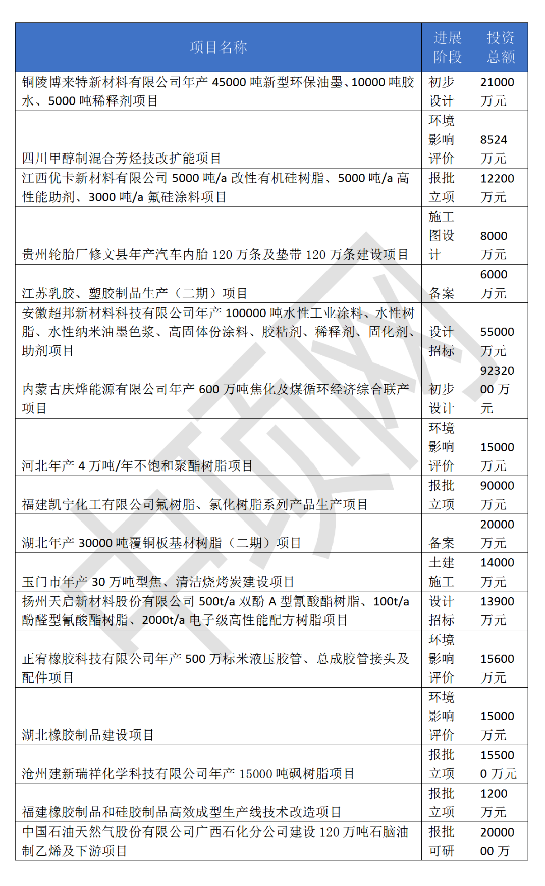 3月第四周最新全國(guó)化工項(xiàng)目匯總